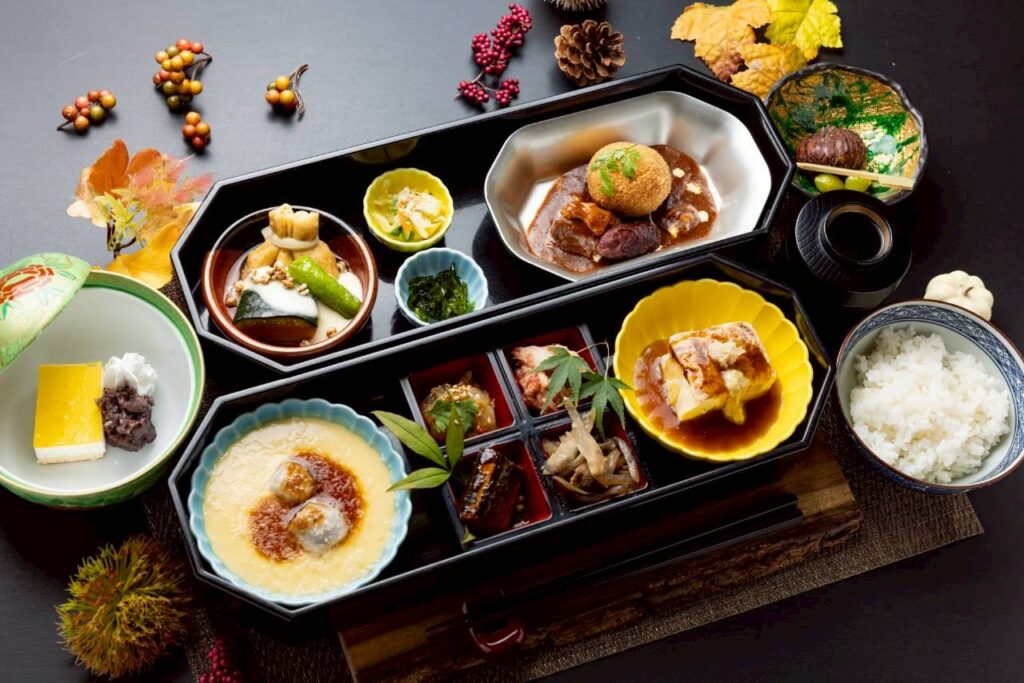 オイスター餡たっぷり、栗の焼き胡麻豆腐や