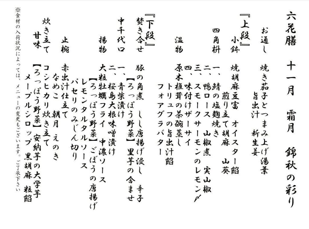 11月の六花膳「霜月〜 錦秋の彩り〜」